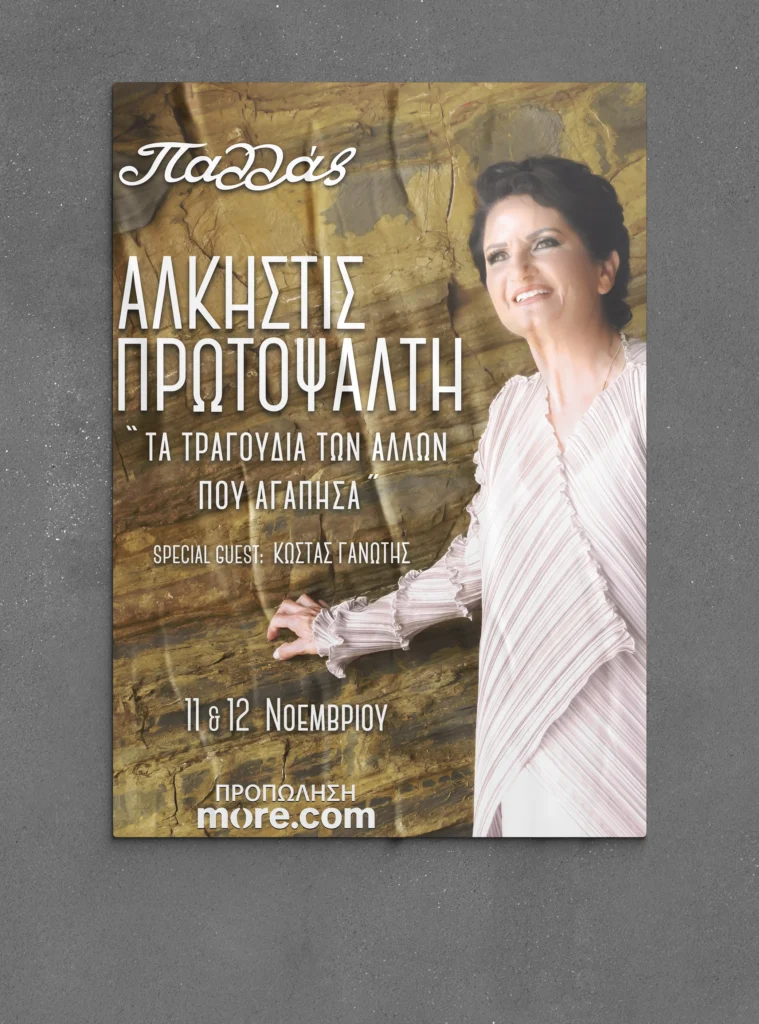 Η αφίσα για τη συναυλία της Άλκηστης Πρωτοψάλτη αποπνέει κομψότητα και διαχρονικότητα, σε πλήρη αρμονία με το ύφος της καλλιτέχνιδας.